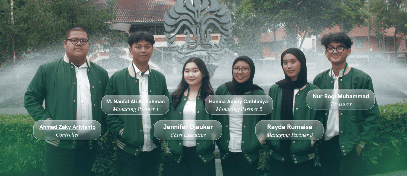 Executive Board JENNIFER DJAUKAR Chief Executive M. NAUFAL ALI AR RAHMAN Managing Partner Studies HANINA ADISTY CATHLINIYA Managing Partner StudentDevelopment RAYDA RUMAISA Managing Partner External NUR ROQI MUHAMMAD Treasurer AHMAD ZAKY ARIVIANTO Controller